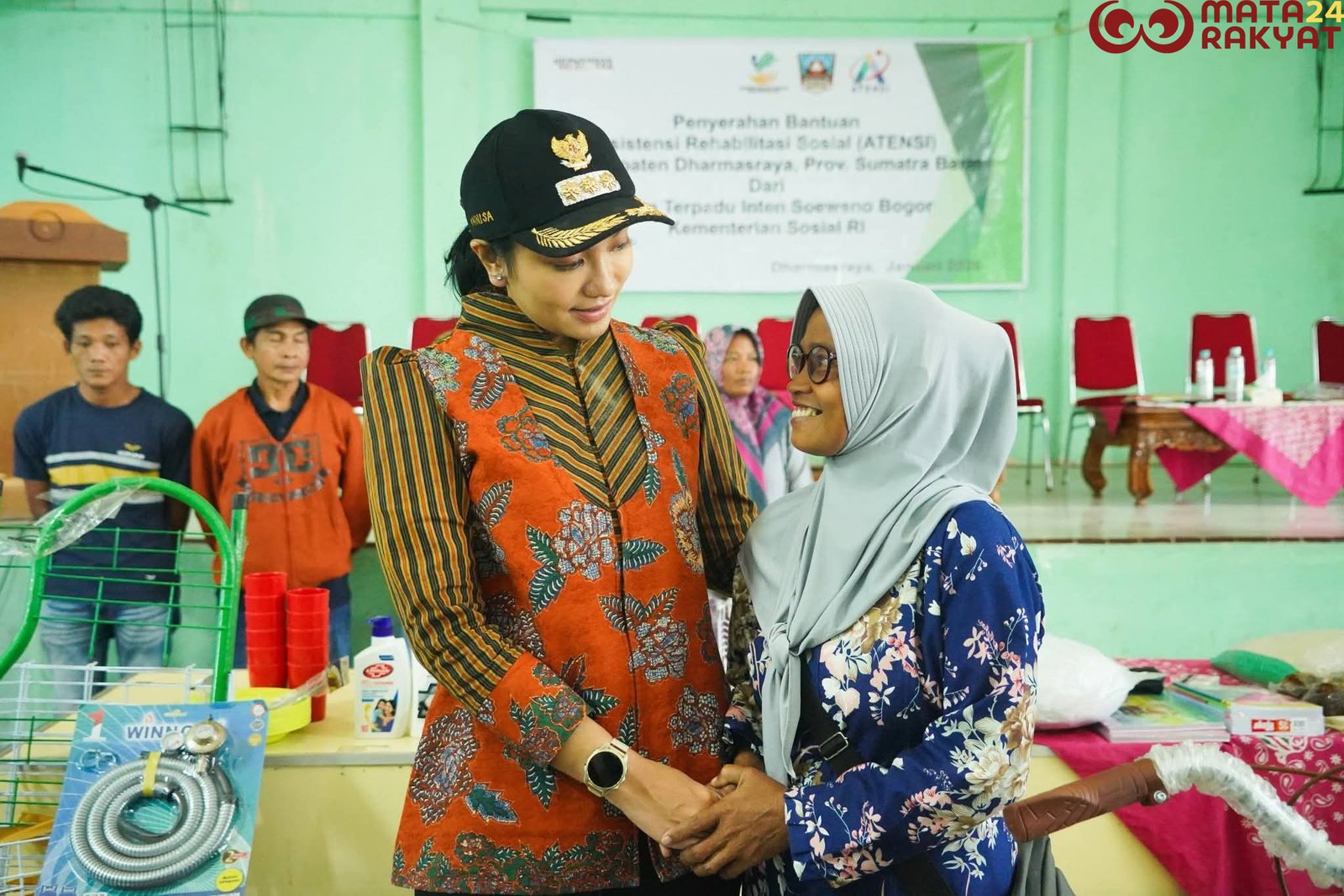 Matarakyat24/Dharmasraya – Bupati Dharmasraya, Annisa Suci Ramadhani, menghadiri sekaligus menyalurkan Bantuan Asistensi Rehabilitasi Sosial (ATENSI) Tahun 2025 kepada masyarakat penerima manfaat di Kabupaten Dharmasraya, di Gedung Pertemuan Umum Kecamatan Sitiung, Rabu (28/1/2026).