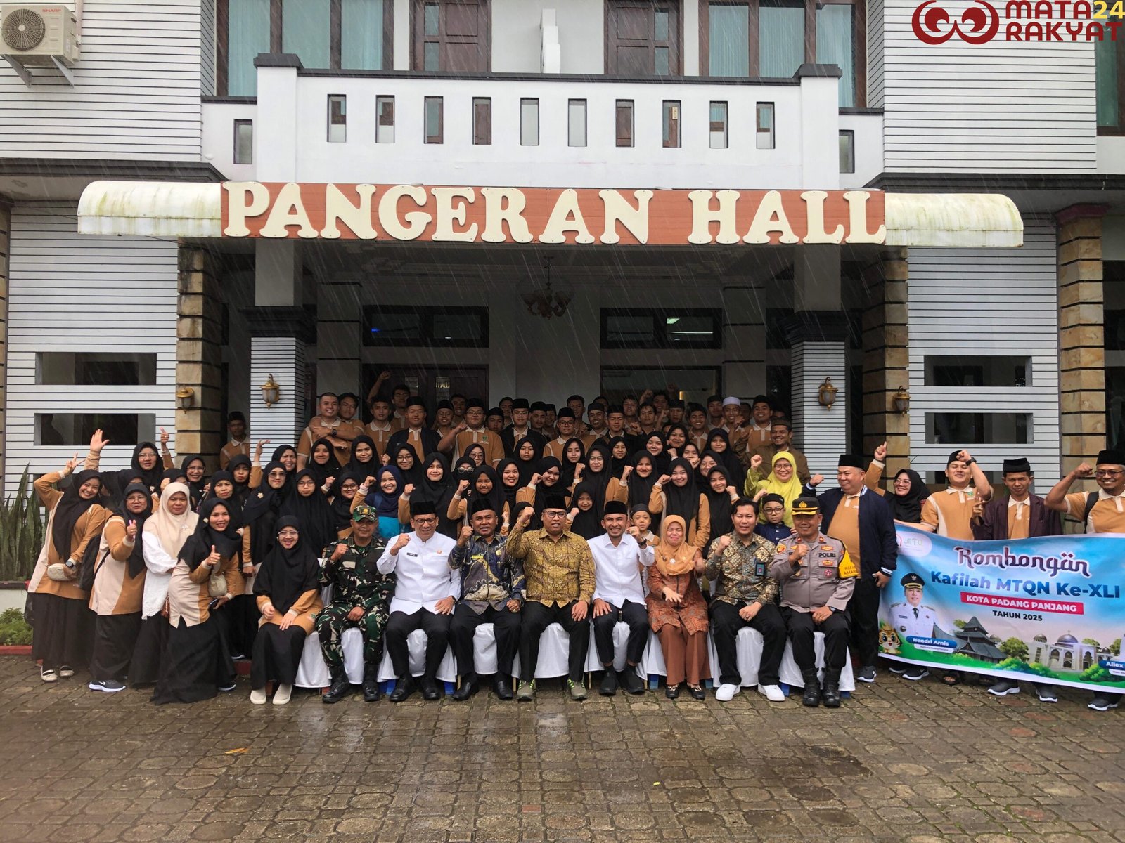 Padangpanjang, Matarakyat24.com — Suasana di Aula Hotel Pangeran, Jumat (12/12/2025) siang terasa berbeda. Satu per satu para peserta MTQ Kota Padangpanjang duduk rapi dengan pakaian seragam, wajah-wajah muda yang membawa harapan besar. Mereka adalah 65 kafilah yang akan berlaga pada MTQ Nasional ke-41 Tingkat Provinsi Sumatera Barat di Bukittinggi.
