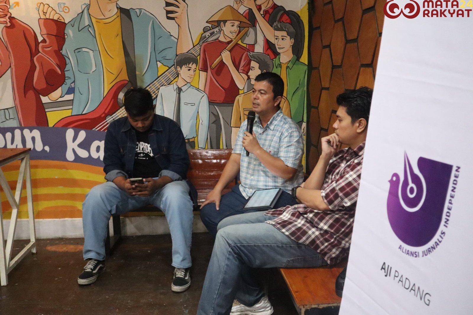 Aliansi Jurnalis Independen (AJI) Padang Gelar Kegiatan Launching posko pengaduan THR di Cafe Naras, Alai Parak Kopi, Kota Padang, Sabtu (14/3/26)