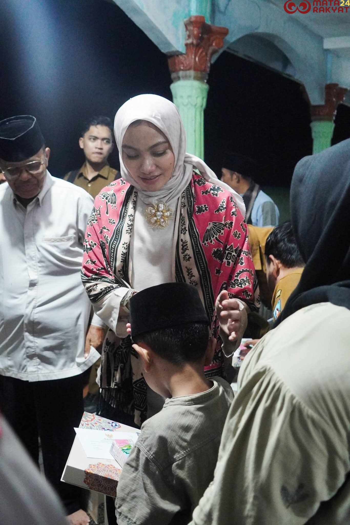 Matarakyat24, Dharmasraya – Bupati Dharmasraya, Annisa Suci Ramadhani, berbagi bersama 100 anak yatim Kecamatan Timpeh dalam kegiatan berbuka puasa yang digelar di Masjid Baitul Makmur, Nagari Tabek, Kecamatan Timpeh, Selasa (24/02/2026).