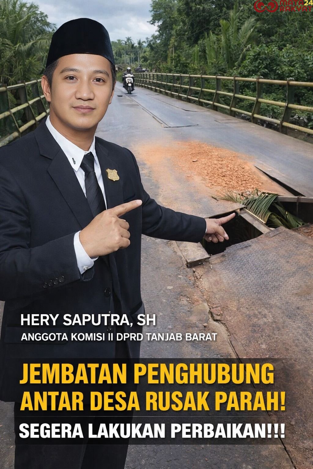 Matarakyat24.com, TANJAB BARAT – Anggota DPRD Kabupaten Tanjung Jabung Barat dari Komisi II, Hery Saputra, S.H., menyampaikan catatan kritis terhadap kondisi Jembatan Harmoko dalam rapat paripurna DPRD terkait penyampaian pandangan fraksi atas nota pengantar LKPJ Bupati Tahun Anggaran 2025, yang digelar pada Senin (6/4/2026).