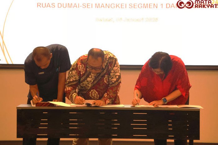 Matarakyat24.com – PT Krakatau Steel (Persero) Tbk / Krakatau Steel Group (IDX: KRAS), dan KSO PT Wijaya Karya (Persero) Tbk yaitu PT Nindya Karya serta KSO Rabana-Abipraya-SBS-Singgar melakukan penandatanganan Kontrak Pengadaan Pipa Baja Pekerjaan Konstruksi Terintegrasi Rancang dan Bangun Pembangunan Pipa Transmisi Gas Dumai – Sei Mangkei (Dusem) Segmen 1 dan 2 pada Selasa, 06 Januari 2026 di Fairfield By Marriot, Jakarta.