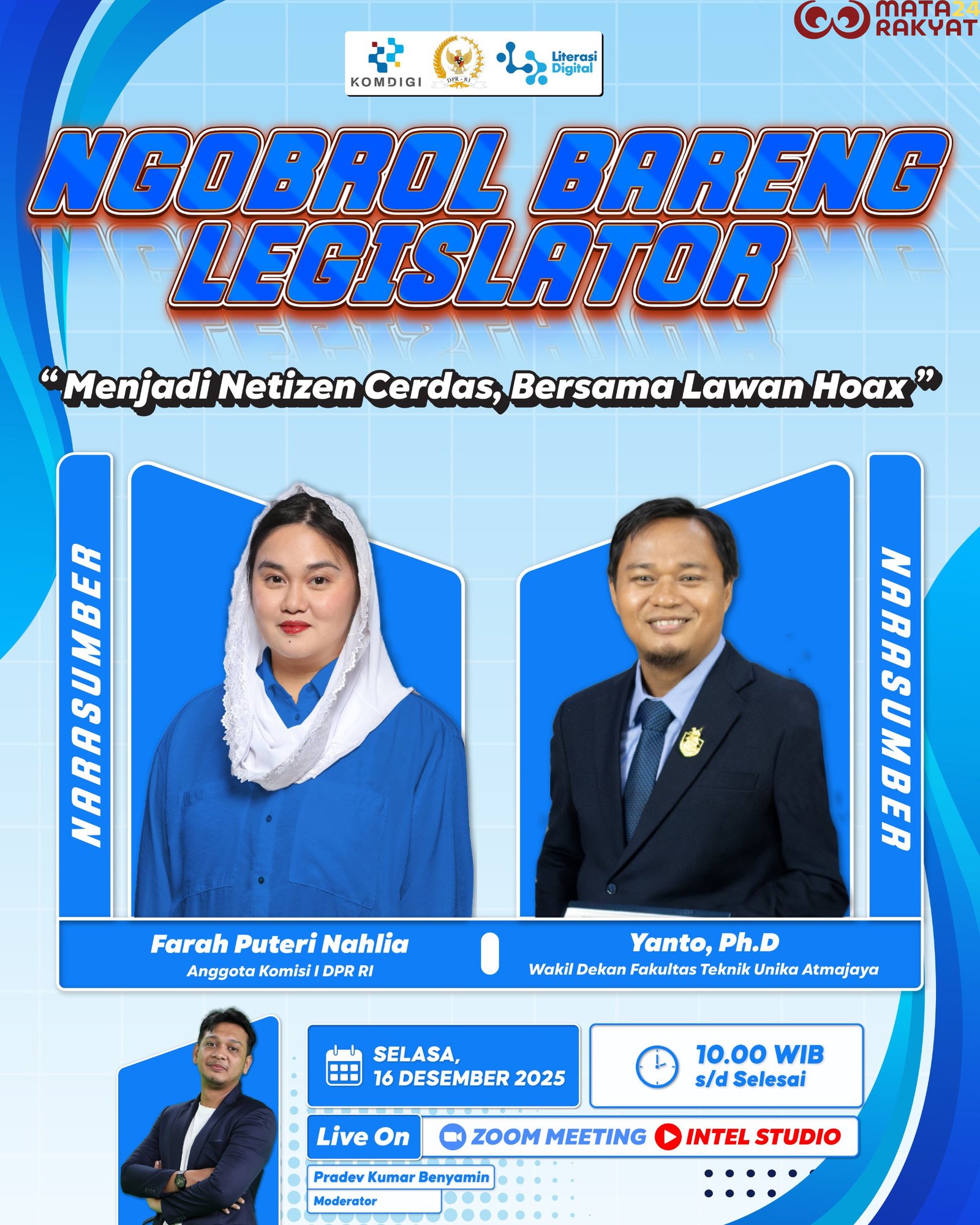 Matarakyat24.com, Jakarta — Anggota Komisi I DPR RI, Farah Puteri Nahlia, mengajak masyarakat untuk menjadi netizen cerdas dan aktif melawan hoaks di tengah derasnya arus informasi digital. Ajakan tersebut disampaikan dalam kegiatan Ngobrol Bareng Legislator bertema “Menjadi Netizen Cerdas, Bersama Lawan Hoaks” yang digelar pada Selasa (16/12/2025).
