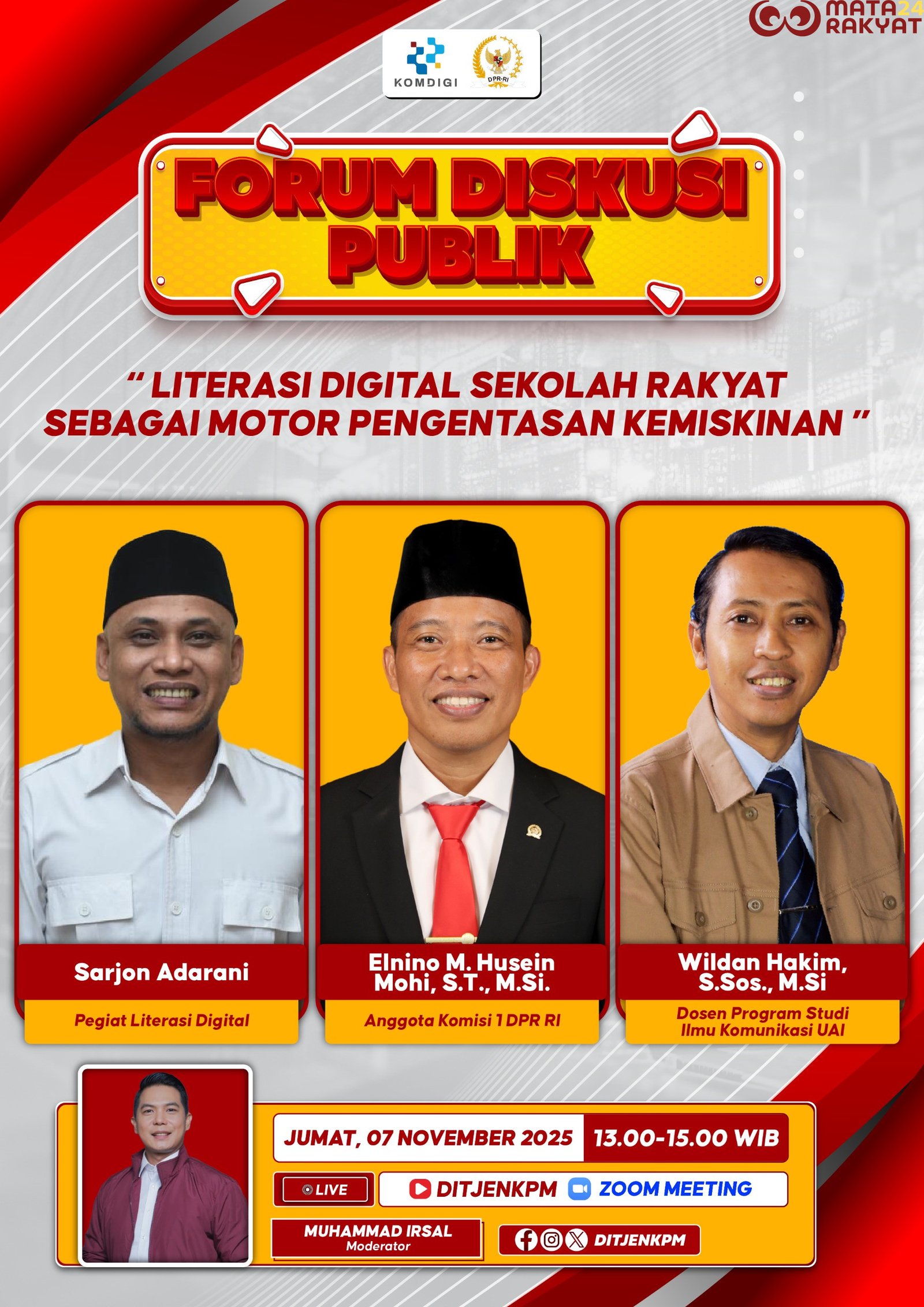 Matarakyat24.com, Jakarta – Sebuah Forum Diskusi Publik kembali digelar untuk membahas penguatan literasi digital dan pendidikan masyarakat melalui model Sekolah Rakyat. Kegiatan ini menyoroti pentingnya kolaborasi antara pemerintah, akademisi, dan komunitas agar pemanfaatan teknologi di tingkat warga tidak hanya sekadar konsumtif, tetapi juga produktif dan aman.