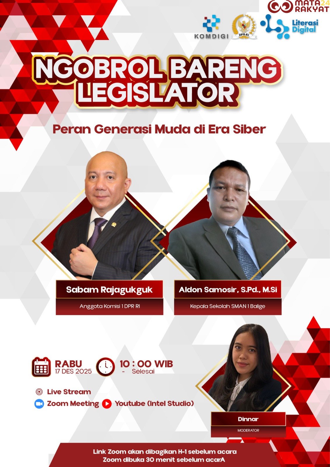 Matarakyat24.com, Jakarta — Peran generasi muda dalam menjaga dan membangun ruang siber yang aman, sehat, dan produktif menjadi sorotan utama dalam kegiatan Ngobrol Bareng Legislator bertema “Peran Generasi Muda di Era Siber” yang digelar secara daring pada Rabu (17/12/2025).