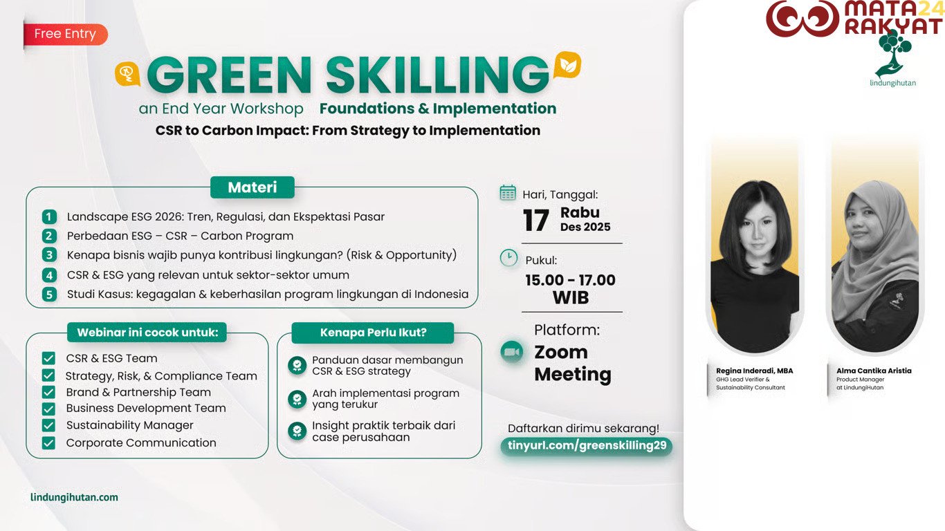 “Transformasi keberlanjutan membutuhkan kompetensi, bukan hanya kesadaran. Melalui Green Skilling Series, kami ingin memastikan bahwa perusahaan tidak lagi berhenti pada awareness, tetapi mampu mengubah inisiatif lingkungan menjadi program dengan dampak yang terukur, dapat dipertanggungjawabkan, dan benar-benar bernilai bagi bisnis,” ujar Dara, Event Organizer LindungiHutan.