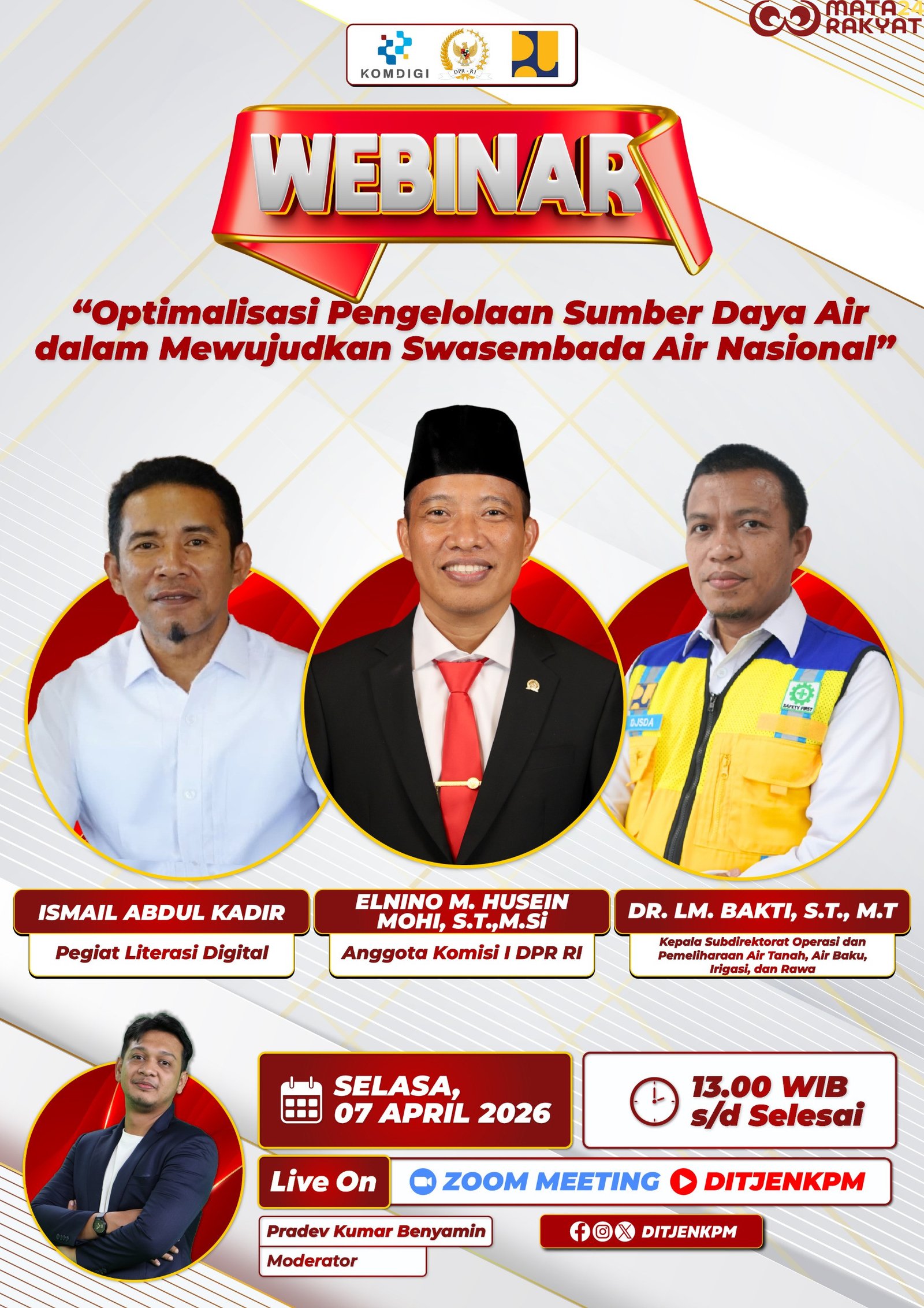 Matarakyat24.com — Upaya mewujudkan swasembada air nasional menjadi agenda strategis yang semakin mendesak di tengah dinamika global dan tantangan perubahan iklim. Hal ini mengemuka dalam webinar bertajuk “Optimalisasi Pengelolaan Sumber Daya Air dalam Mewujudkan Swasembada Air Nasional” yang diselenggarakan pada Selasa, 7 April 2025.