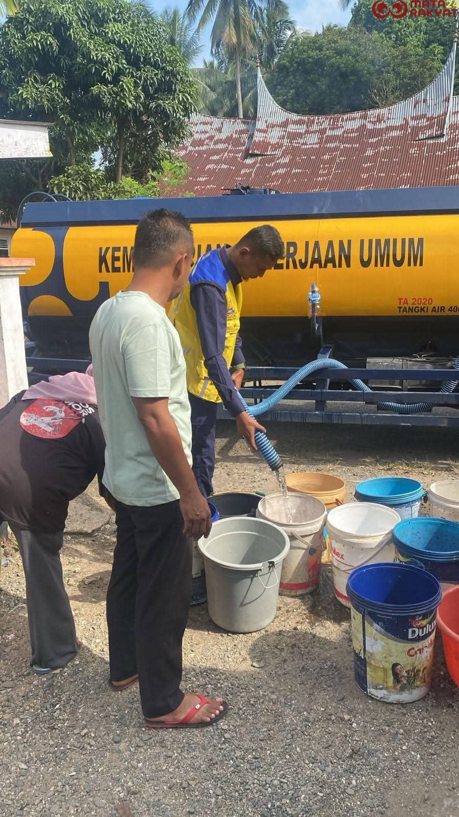 Terpantau di nagari IV Koto puluan Punjung Penyaluran bantuan air bersih langsung diserahkan ke rumah warga yang terdampak kekeringan pada hari Sabtu 21/2/26.