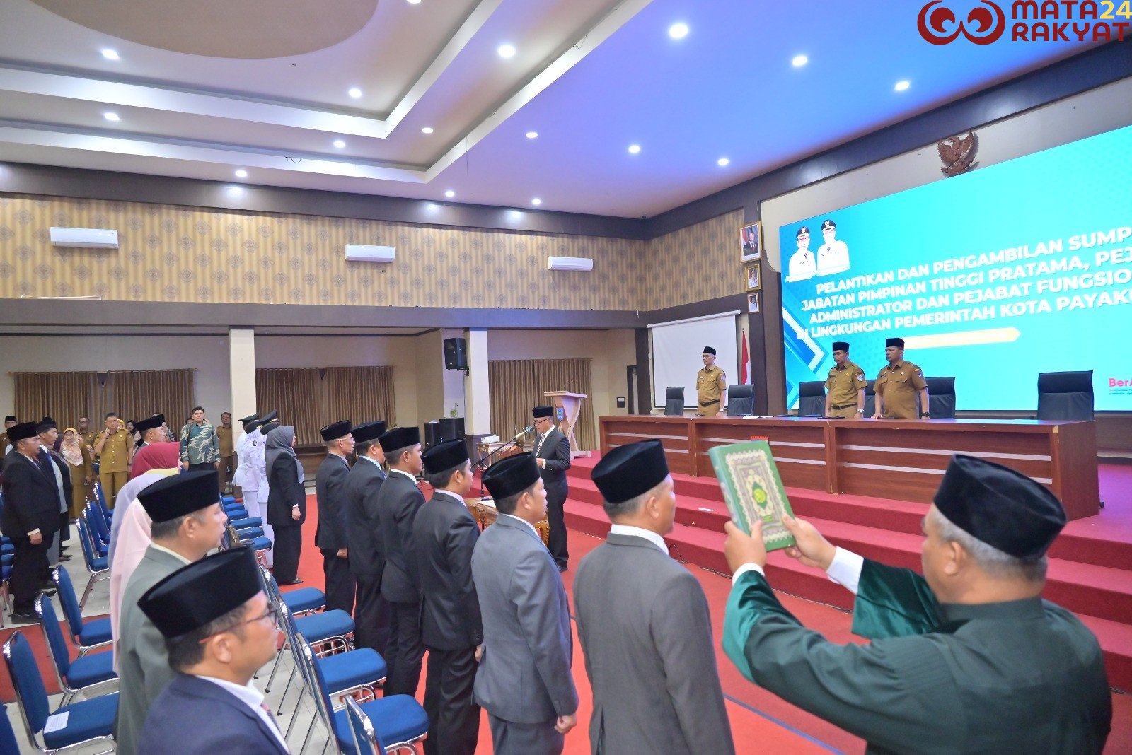 Matarakyat24.com, Payakumbuh — Pemko Payakumbuh memperkuat struktur birokrasi dengan melantik dan mengambil sumpah jabatan pejabat pimpinan tinggi pratama, pejabat administrator, dan pejabat fungsional untuk mendorong akselerasi pelayanan publik yang lebih profesional dan responsif.