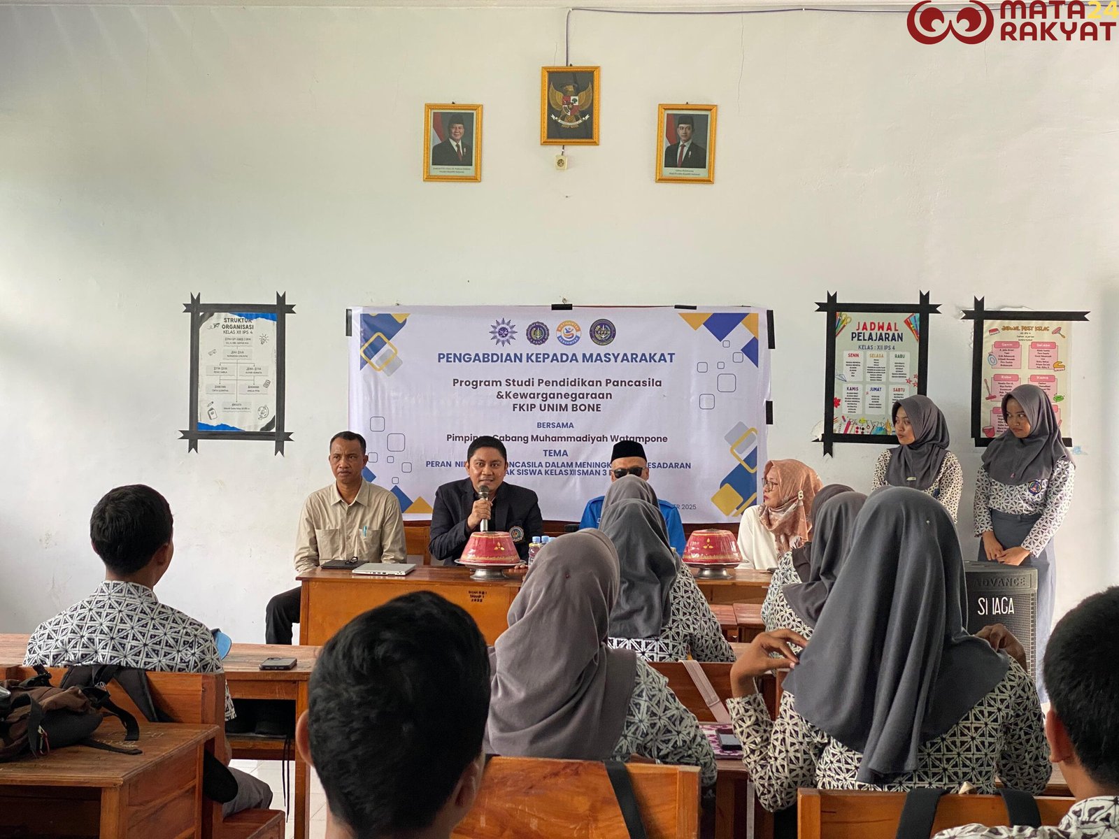 Bone, Matarakyat24.com___ Program Studi Pendidikan Pancasila dan Kewarganegaraan (PPKn) Fakultas Keguruan dan Ilmu Pendidikan (FKIP) Universitas Muhammadiyah (UNIM) Bone bekerja sama dengan Pimpinan Cabang Muhammadiyah (PCM) Watampone melaksanakan kegiatan pengabdian kepada masyarakat di SMA Negeri 3 Bone, pada Rabu 22 Oktober 2025
