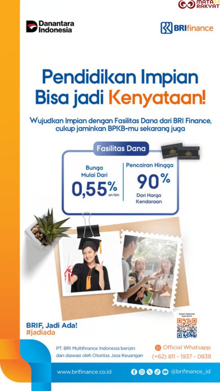 Salah satu tantangan utama dalam pendidikan adalah ketersediaan dana yang memadai untuk mendukung proses belajar. Banyak keluarga di Indonesia masih menghadapi kendala finansial ketika harus memenuhi biaya sekolah hingga pendidikan tinggi anak-anak mereka. Menyadari hal tersebut, PT BRI Multifinance Indonesia (“BRI Finance”), anak perusahaan PT Bank Rakyat Indonesia (Persero) Tbk., hadir dengan solusi pembiayaan dana pendidikan melalui produk BRI Flash yang cepat, mudah, dan fleksibel.