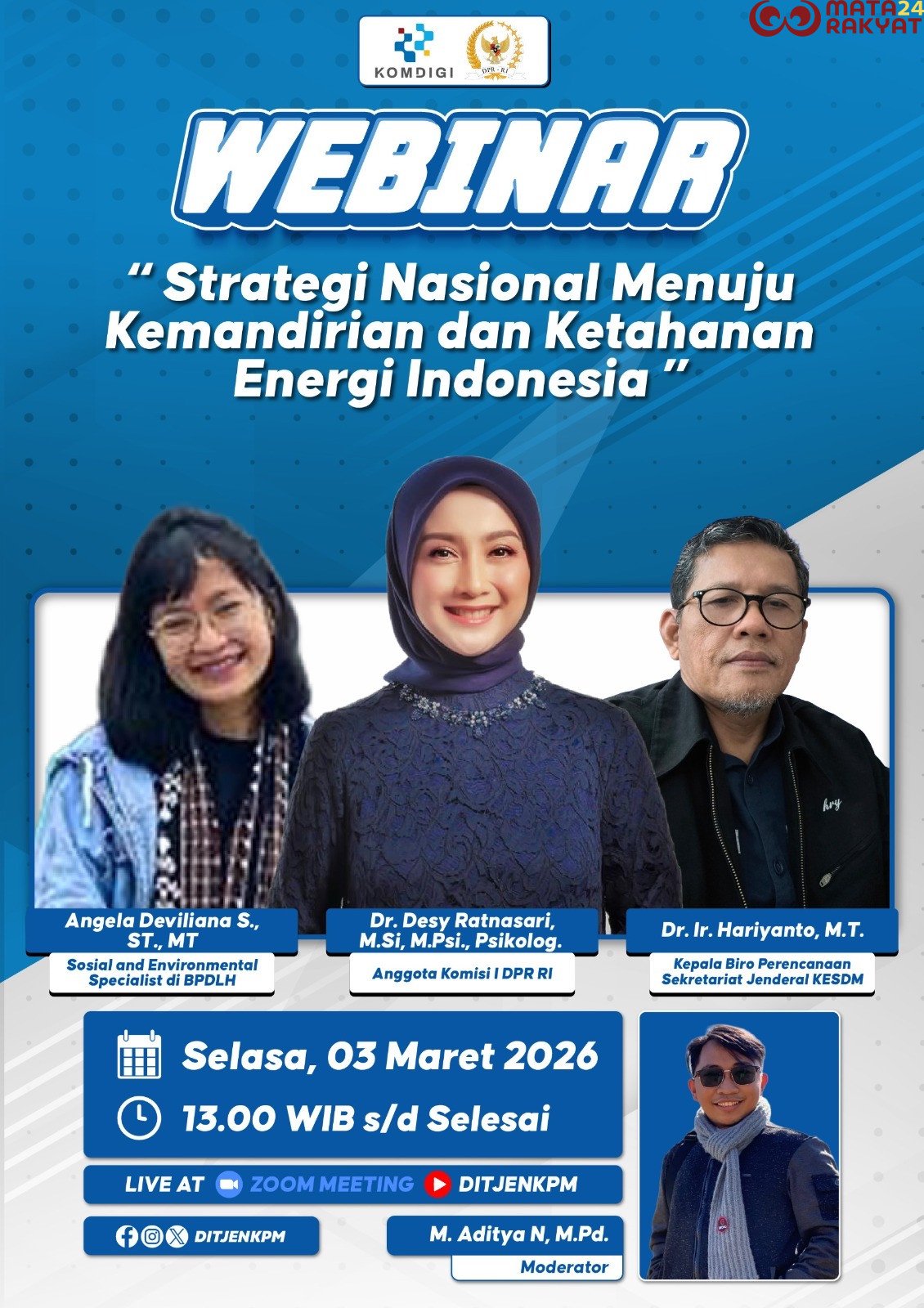 Matarakyat24.com, Jakarta, 3 Maret 2026 — Penguatan strategi nasional menuju kemandirian dan ketahanan energi Indonesia menjadi agenda prioritas dalam menghadapi dinamika geopolitik global, fluktuasi harga energi, serta tantangan transisi menuju energi bersih. Hal tersebut mengemuka dalam forum diskusi publik bertema “Strategi Nasional Menuju Kemandirian dan Ketahanan Energi Indonesia” yang diselenggarakan pada Selasa (3/3).