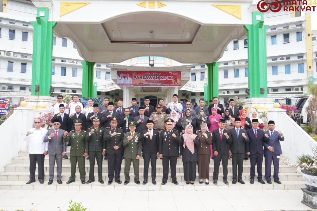 Dengan tema “Pahlawan Teladanku, Terus Bergerak, Melanjutkan Perjuangan”, upacara peringatan Hari Pahlawan ke-80 tahun 2025, turut dihadiri oleh jajaran Forkopimda, Kepala Perangkat Daerah, ASN, TNI/Polri, pelajar, serta organisasi masyarakat.