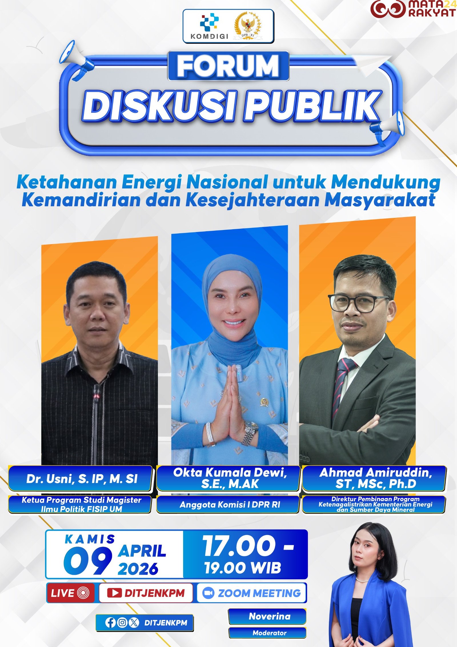 Matarakyat24.com, Jakarta, 9 April 2025 – Indonesia memiliki peluang besar untuk menjadi pemain utama dalam transisi energi global. Hal ini mengemuka dalam webinar yang membahas pentingnya inovasi dan pengembangan energi bersih sebagai bagian dari ketahanan energi nasional.